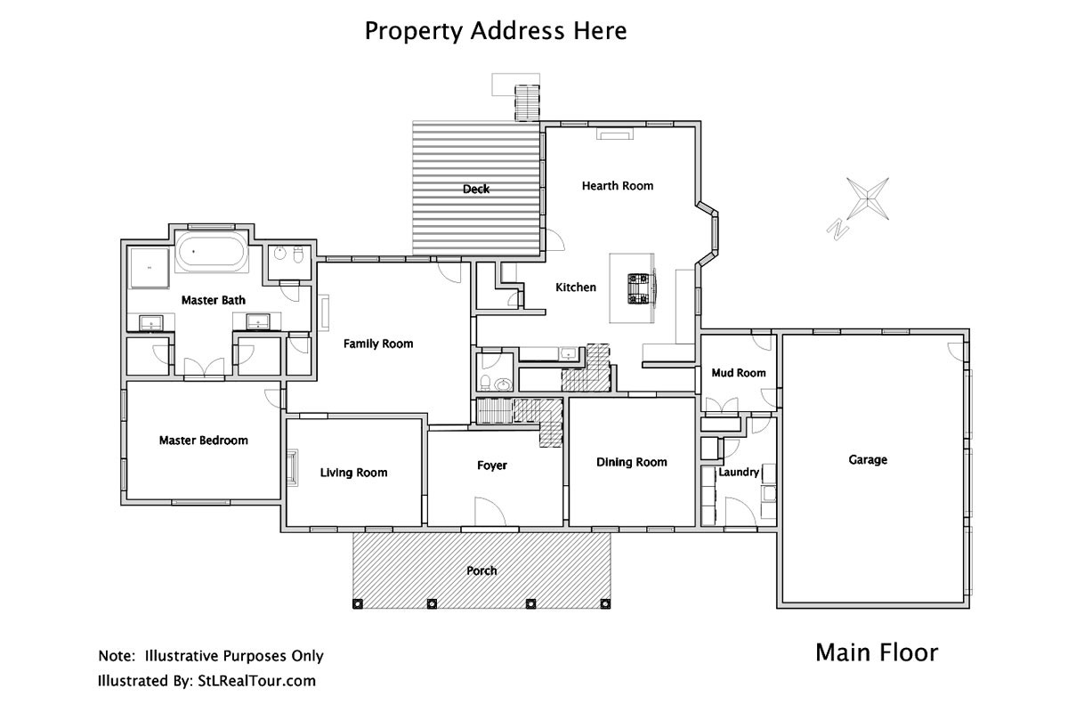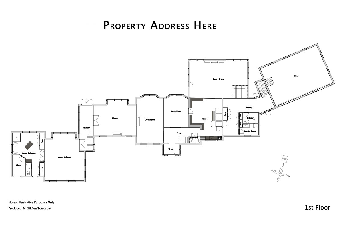 Floor Plan drawings that show a 2-D top down view of the relationship and flow between rooms. These floor plans will be made interactive using your interior photos.